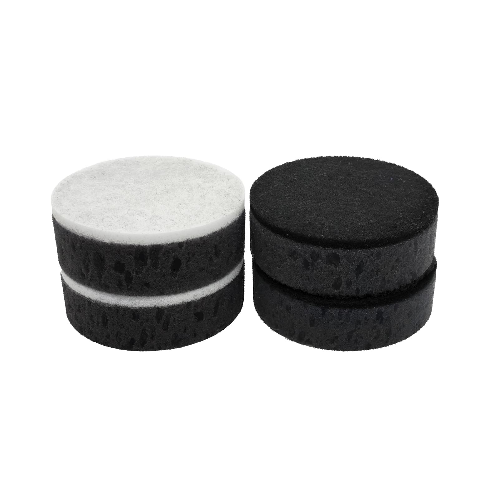 Базові кухонні губки Добра господарочка Black&White LUNA відразу привертають увагу своїм стильним дизайном та круглою формою. Саме завдяки круглій формі, вони зручно лягають в руці та добре підходять для очищення різних кухонних поверхонь. Крупнопористий поролон забезпечує гарне піноутворення та економію миючих засобів. Губки з чорною фіброю використовуються для миття посуду, очищення раковин, кранів та інших поверхонь. А губки з білю фіброю – для чищення делікатних поверхонь (тефлону, кераміки тощо).